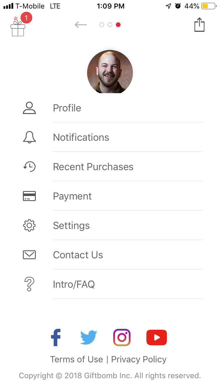 The next feature release should focus on allowing users to send a photo/video thank you message after redeeming their Giftbomb, to submit new merchant suggestions, and to regift a Giftbomb to a friend.